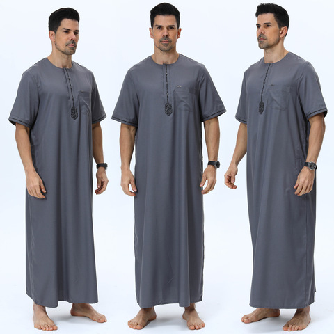 男性用モロッコスタイル半袖ローブクロスボーダーボタンカバー夏通気性ポリエステルコットン伝統的なイスラム教徒